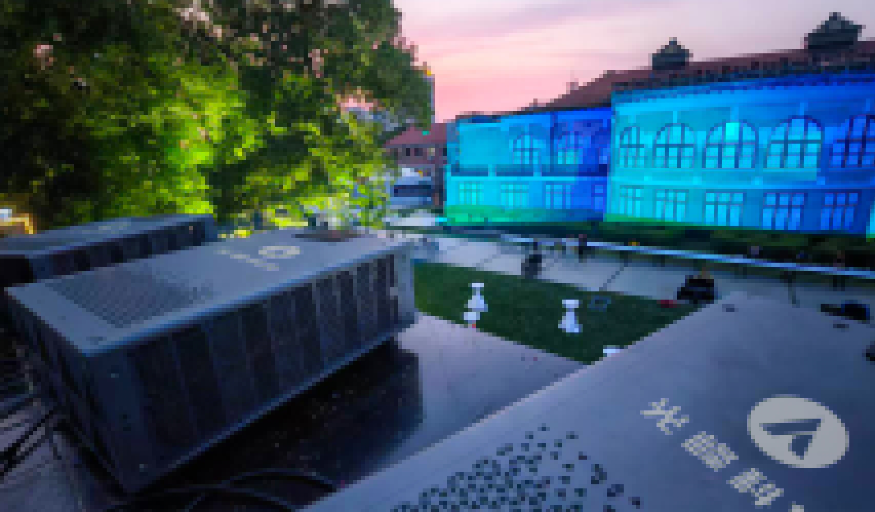 6月24日,當夜幕籠罩津門,一場以科技為筆、光影為墨的視覺盛宴在達沃斯晚宴現(xiàn)場驚艷亮相。3臺光峰T Pro系列工程投影機將40米寬、9.5米高的建筑立面幻化為沉浸式巨幕。