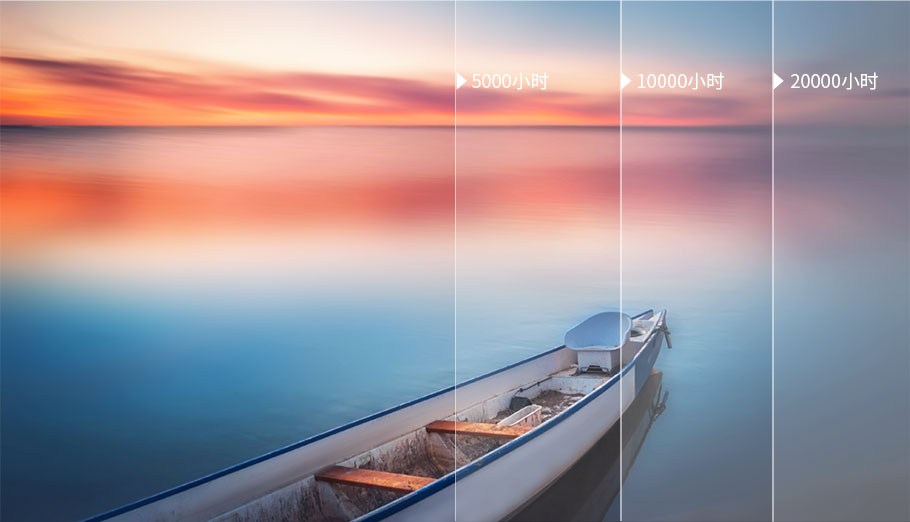 應(yīng)用ALPD激光光源壽命長達(dá)25000小時(shí),在整個(gè)壽命期內(nèi),色彩飽和度和亮度衰減幅度也很小,