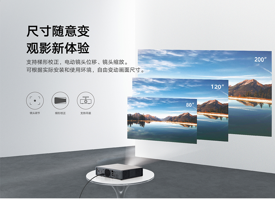 【¥36999】4K智能直投家庭激光影院,80-200吋的超大畫(huà)面,尺寸隨意變,觀影新體驗(yàn)。小空間、大感受,沉浸您的專屬“視”界,為私人家庭影院量身打造。