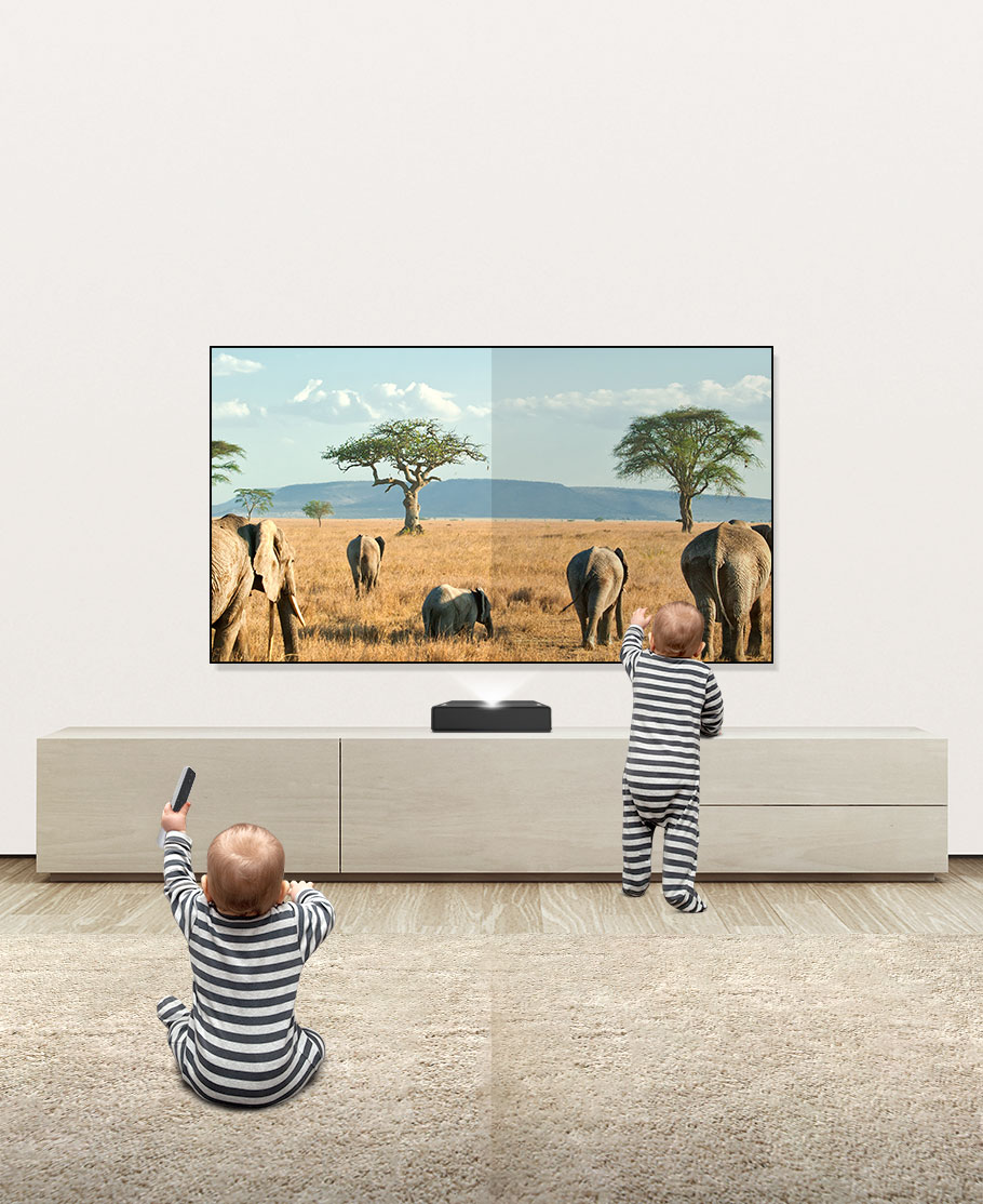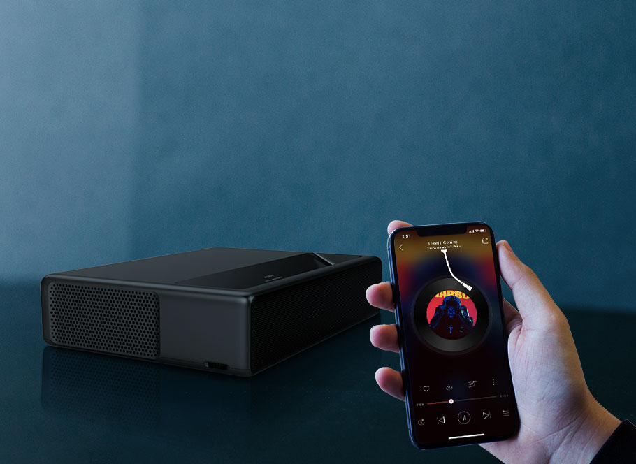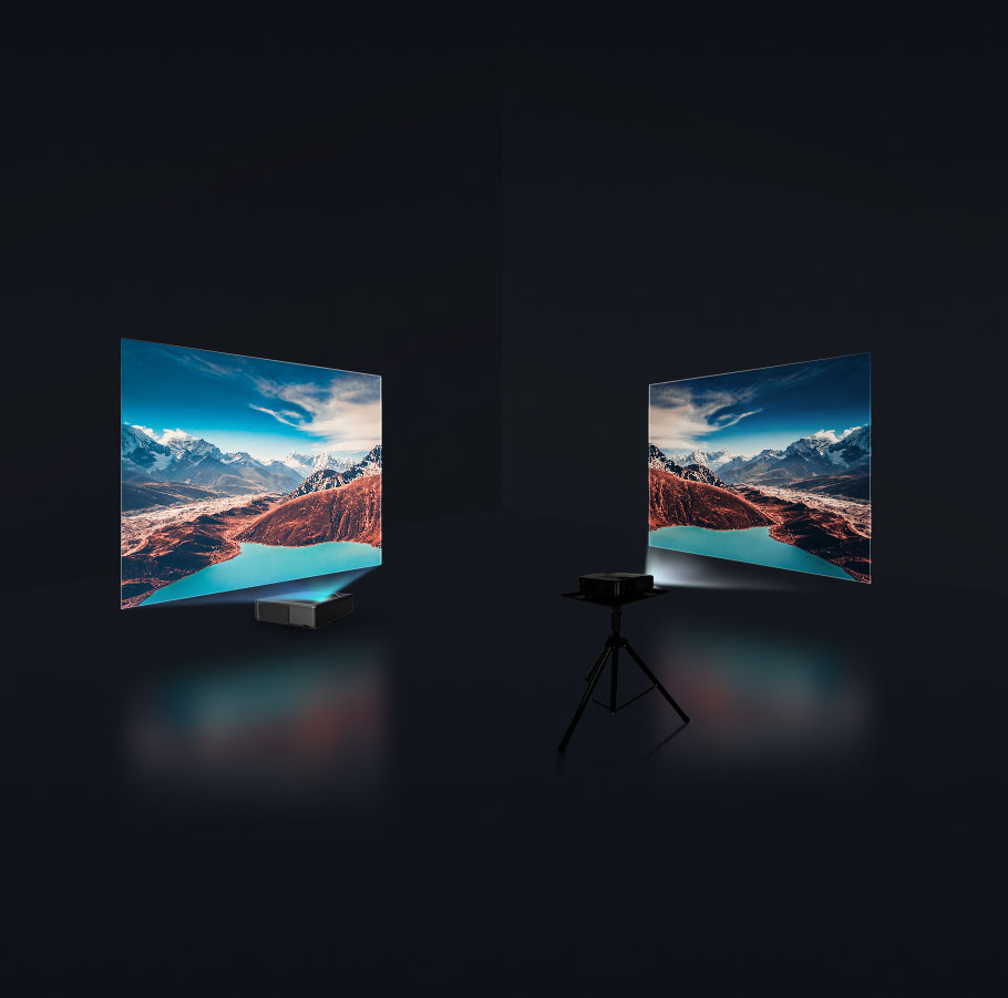 沒(méi)有布線的煩惱,不再擔(dān)心畫面遮擋,距離墻面5-50厘米即可投放60-150英寸畫面。